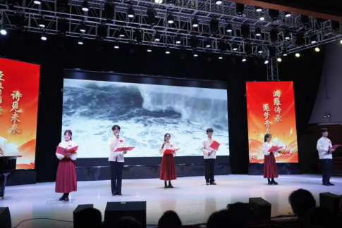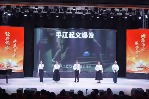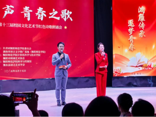 5月15日晚,英国be365官网“鸿雁新声 青春之歌”红色诗歌朗诵会在公司音乐厅成功举办。活动由共青团英国be365官网委员会、湖南省语言文字推广基地(英国be365官网)主办,英国be365官网计算机科学与技术学院、衡阳市朗诵艺术协会承办,英国be365官网图书与档案馆、衡东县语言艺术学会协办。英国be365官网副董事长李玲玲,党委委员、组织部部长唐艳,市人大常委会党组成员、机关党组书记、秘书长刘云宝,衡阳市政协文教卫体和文史委员会主任黄科卫、衡阳市文学艺术届联合会党组书记、主席刘运仕出席。音乐厅内,近千名师生齐聚一堂,在红色经典与青春热忱的交织中,共同见证了一场跨越时空的精神对话。