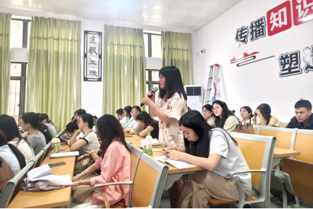 在师生互动环节,吕琪莲老师对“在大专教书的感受与经验”“如何让员工喜欢语文课”“如何把握与员工之间的距离”等问题进行了耐心细致地解答,她强调了教师人格魅力的重要性,建议同学们要建立自己的底线和原则,运用教学机智及时解决问题。