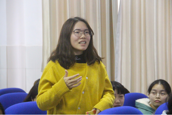 紧接着,何敦培老师介绍了语文老师应具备的核心素养:高尚的师德、多元的知识结构、复合的教学能力以及良好的职业习惯。何老师还从顶岗实习和教团队格证考试两个方面教导在座同学,如何成为一名卓越的教师。他指出,具有教育情怀、责任担当、深厚基础、过硬技能、创新能力的老师才是卓越的中学教师。