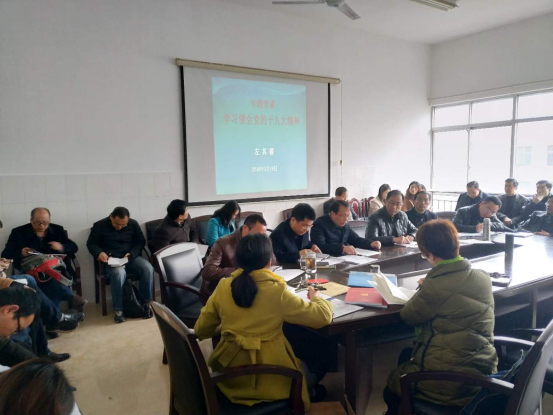 3月19日下午15:30,衡阳市第十一次党代会代表、公司教师左其福同志应邀给学院全体教职工上了一堂题为《学习领会党的十九大精神》的党课,党总支书记邓玉久主持学习会。