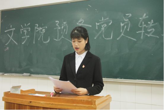会议第一阶段举行2019年上半年预备党员转正大会。胡娟、许亦姝、袁才英、谢云云、谢子妍、唐莉、匡文琪、龚佳欣、彭诗雨、庞婉清、袁佳玉、陈文婕、刘嘉玲、王元茂、熊英、邓欢姣、曹钟文等17位拟转正的预备党员同志依次上台向党组织汇报一年预备期内思想、学习、生活和工作等方面的情况,同时反思了自身所存在的不足之处。