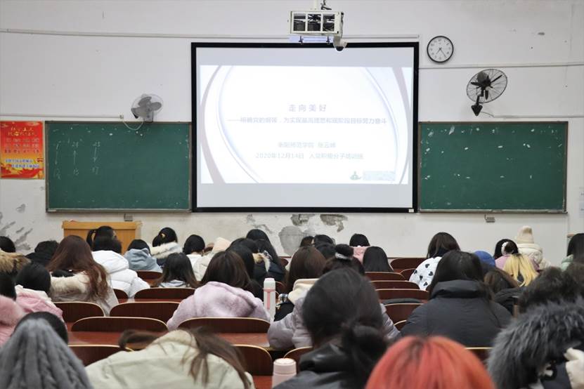 讲座伊始,文公司党总支书记张云峰以“走向美好”这一话题为引,适时适当地引导在座入党积极分子对梦想和三观进行深度思考。