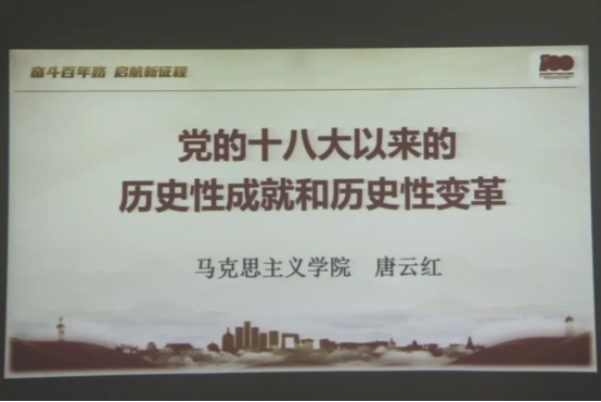 报告伊始,唐云红教授对其主题内容进行了简要介绍。本次报告的主题是“党的十八大以来的历史性成就和历史性变革”。主要内容分为三部分,分别是“取得历史性成就和变革的时代背景”“全面把握历史性成就和变革”“取得历史性成就与变革的原因及启示”。