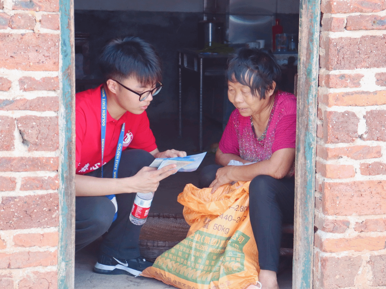 与此同时,受当地方言的影响,笃行团成员在与村民交流的过程中存在沟通障碍。为了确保宣讲效果最大效率化,提高村民们对国家资助政策的知晓率,笃行团成员通过生动的语言和丰富的肢体动作,并结合村民家庭的具体情况进行详细介绍,让村民们深切感受到资助政策带来的实惠与希望。村民们高兴地表示:“国家的资助政策好啊,让我们家庭经济有困难的员工多了一份保障,能够认真无虑地读书!”