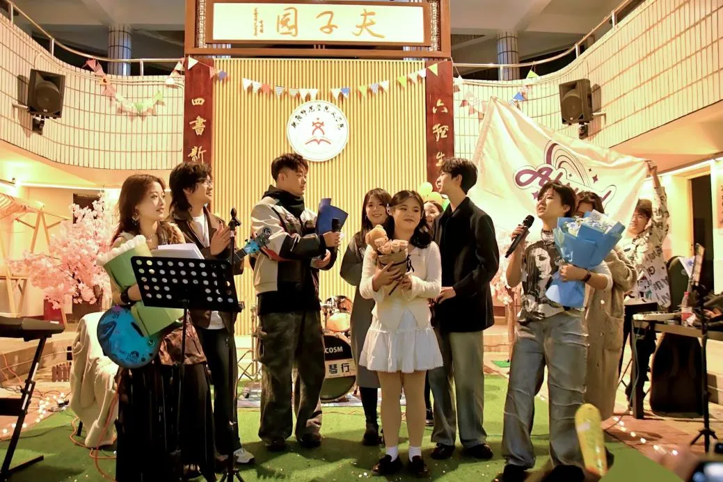 灯光温柔洒落,荒谬乐队以一曲《后来》,编织着时光的锦缎,琴弦拨弄往昔,歌声轻诉故事。毕业成员藏情于调,两日昼夜打磨,共赴这场校庆之约。曲毕,鲜花绽于怀中,情谊在相拥间流淌,为青春终章添一抹缱绻诗意。此刻,舞台落幕,回忆长留,这场音乐盛宴终化作种子,在岁月里,萌生出更多关于热爱与梦想的故事,激励着衡师学子一往无前。