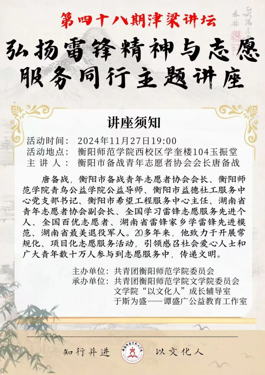 青春志愿行,奋斗正当时||第四十八期津梁讲坛“弘扬雷锋精神,与志愿服务同行”主题讲座顺利开展