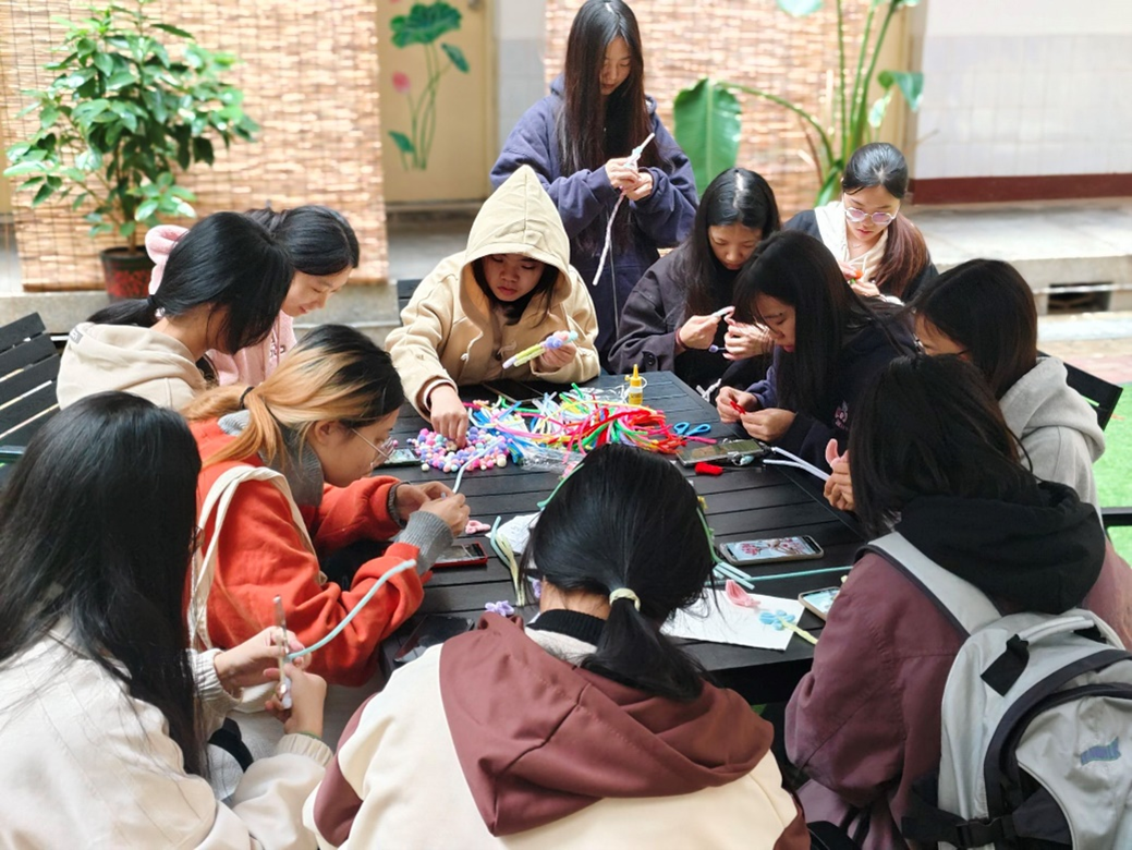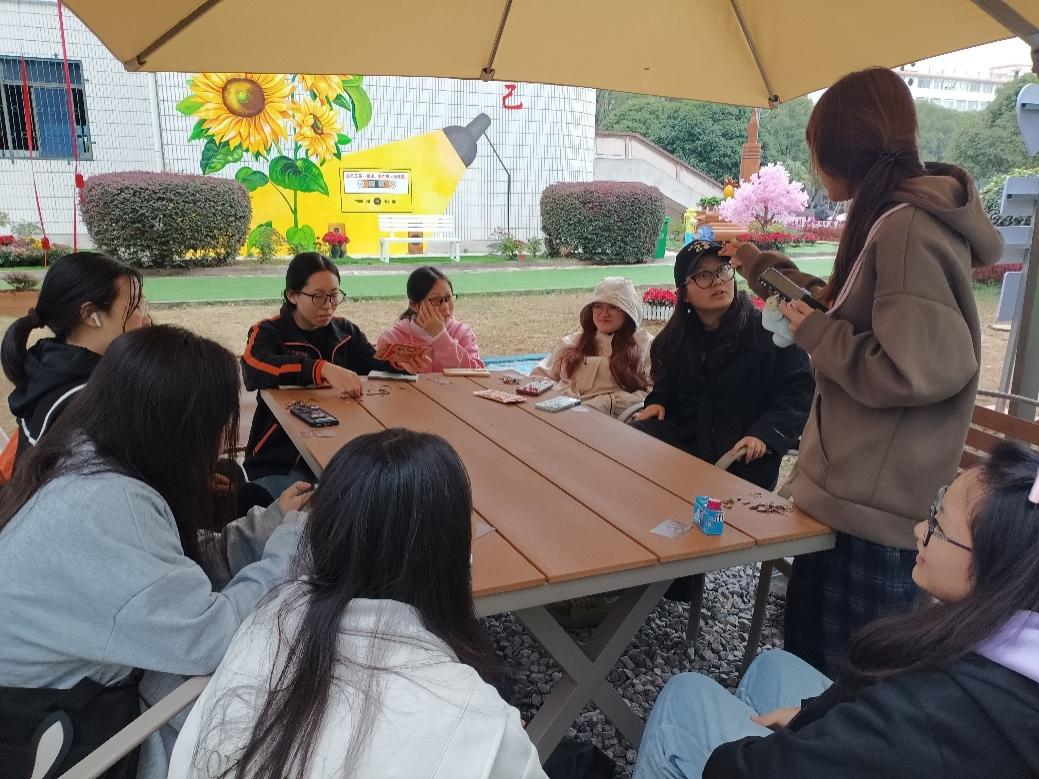 夫子园里的游戏也毫不逊色。扭扭棒活动里,同学们用灵巧的双手将扭扭棒变为可爱的发箍、指环和花朵,红的似火、粉的像霞、紫的如梦,仿佛将四季的色彩都汇聚于此;“谁是卧底”的游戏紧张刺激,大家的每一次发言、每一个表情都暗藏玄机,揪出卧底的那一刻,欢笑声瞬间爆发。