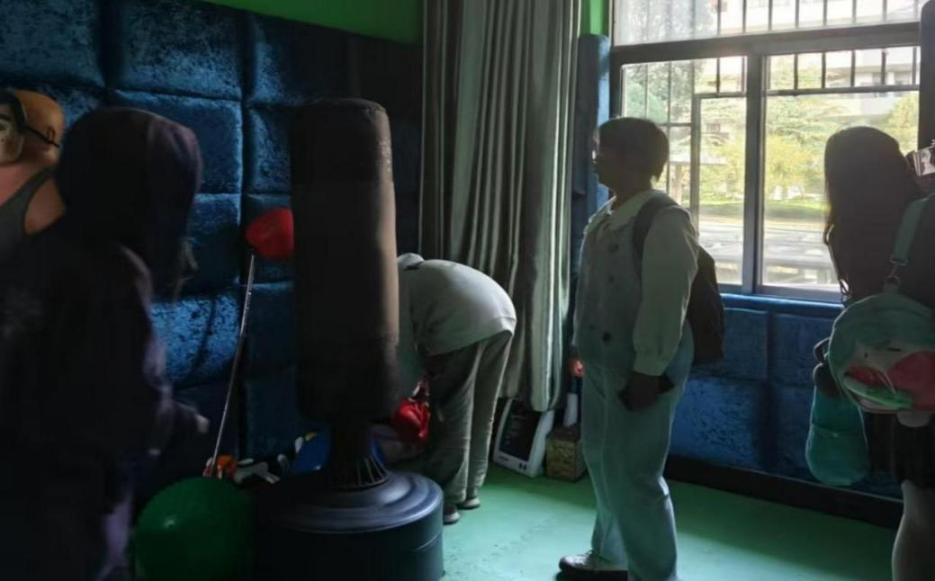 守望者心理工作室工作人员分别组织各班前往心理咨询室,同学们在他们的带领下参观了接待室及心理咨询室。工作人员为同学们示范了如何使用解压室的各种器材,现场展示了沙盘的功能及用法,并教导同学们如何使用器材释放压力。