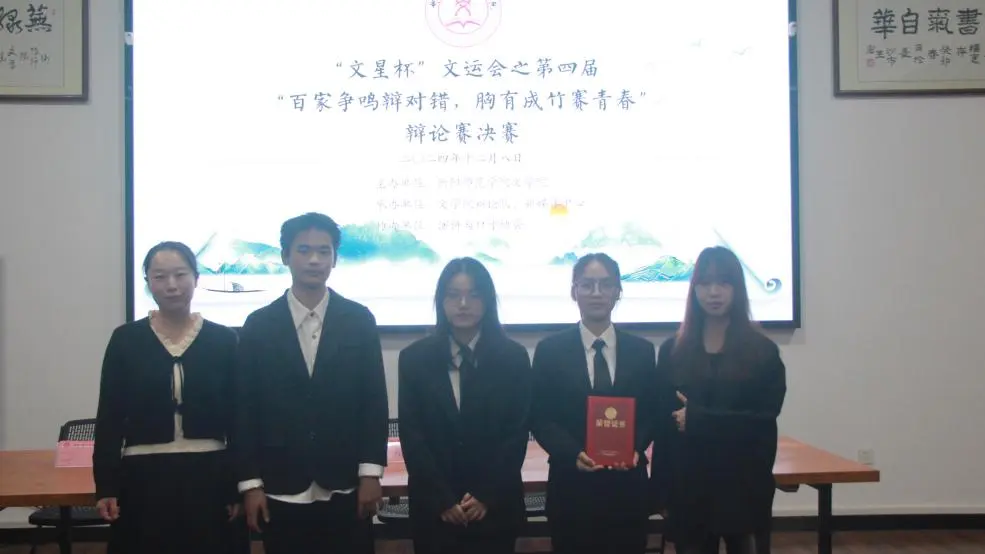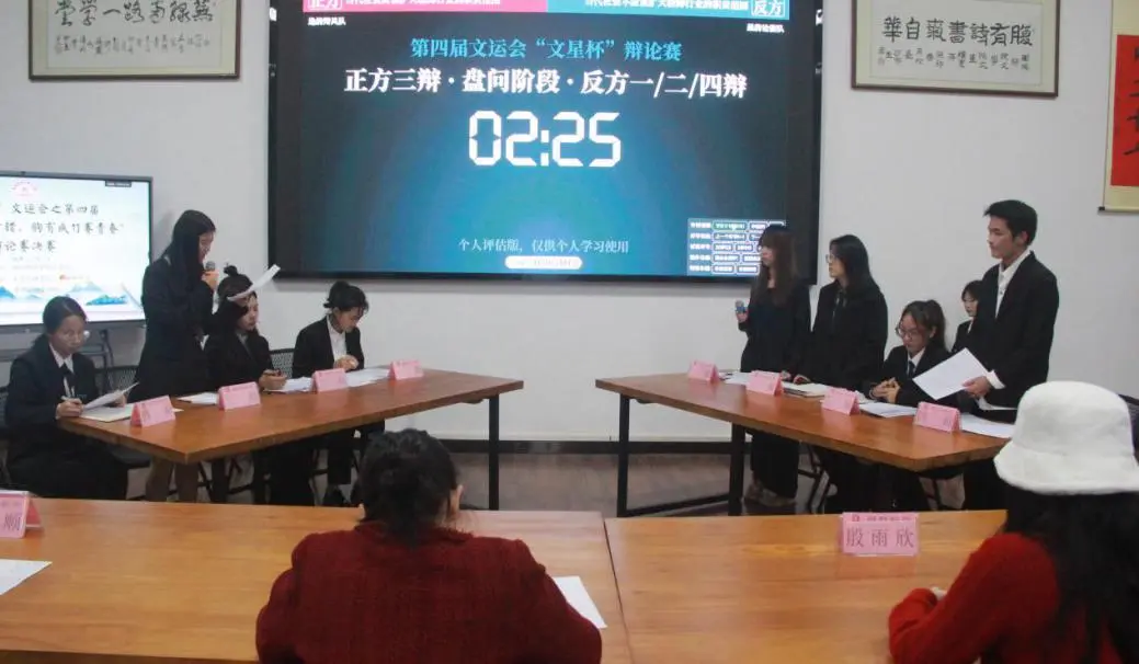 为了激发青年群体活力,提高青年学子的语言表达能力,锻炼员工的逻辑思维能力。12月8日下午,英国be365官网于学奎楼207举办了第四届 “文星杯”文运会之“百家争鸣辩对错,胸有成竹赛青春”辩论赛决赛。本次比赛由英国be365官网辅导员谢炎伶、第九届英国be365官网辩论队成员殷雨欣、伍晶晶及演讲与口才协会会长刘顺担任评委,比赛由2023级汉语言文学8班曾语嫣、2024级汉语言文学3班郭晶晶进行主持。