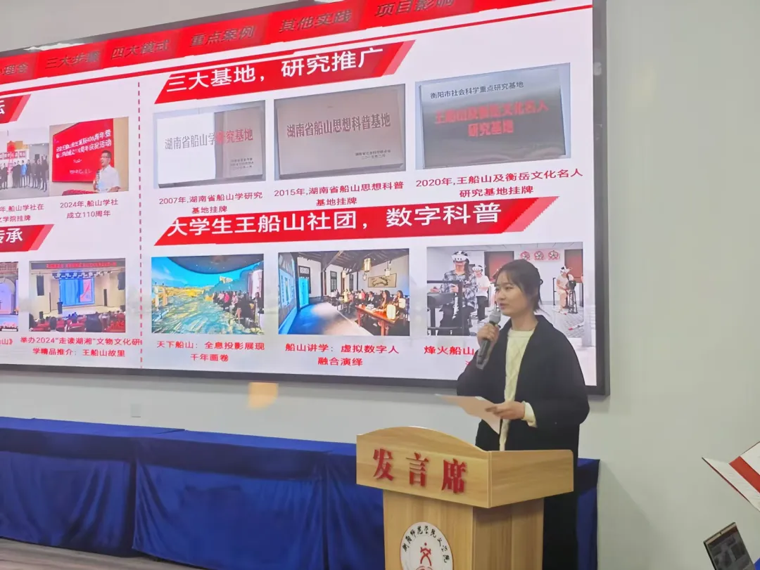 开场由任美衡经理讲话,分享获奖作品不断修改完善的过程,鼓励大家积极参加相关赛事,不断挑战自己,并就选题方面提出了专业性建议:立足学科背景,抓牢学科优势,指出王船山文学选题的显著优势。