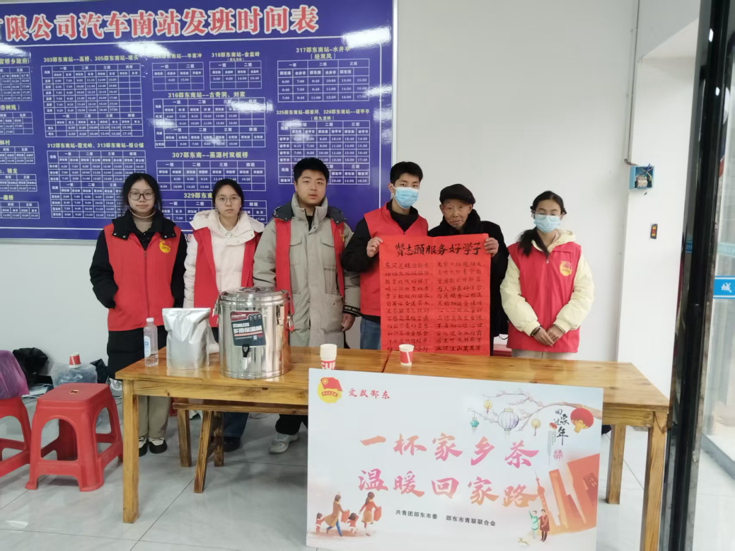 邵东市 “暖冬行动·情满旅途” 春运志愿服务活动已连续开展两年,活动规模不断扩大。步入汽车南站,站内人来人往,嘈杂的人声与滚轮声交织。志愿者们手持暖心茶,为旅客送上归家的第一份问候,升腾的热气中饱含着浓浓的深情。一位鬓角发白的老奶奶接过茶,轻抿一口后,脸上乐开了花,开心地说道:“喝了这杯茶,心里别提有多暖和了。”那笑容,温暖了每一位志愿者的心。