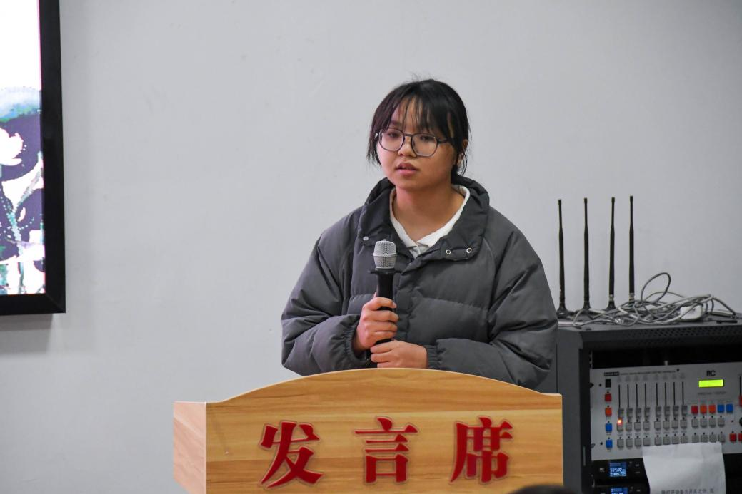 2024年“读懂中国”活动省级一等奖获得者代表张红瑶毫无保留地向同学们分享了自己的创作经验和心得。她分别从解读比赛要求、确定采访对象、采访准备、采访执行和文稿撰写这五部分来分享自己的经验。她指出,在采访时,要注意礼貌礼节和采访的细节要求,掌握相应的采访技巧,灵活应对不同对象,快速应对突发情况,采访完录音文件应及时备份储存。
