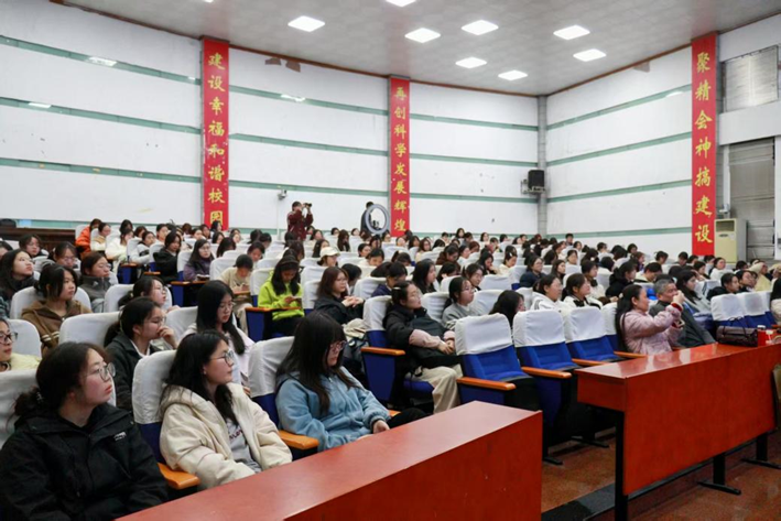 文公司党总支书记张云峰,创新创业学院经理唐斯萍,文公司党总支副书记何颖,教师代表秦秋咀出席本次讲座,英国be365官网、教育科学学院等5个学院的员工200余人到场参与。