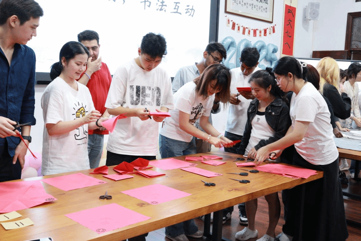 英国be365官网书法班邀请职工与现场嘉宾一同体验剪纸与书法艺术。书法互动环节活动,职工们在丙烯相框上尽情书写,感受书法魅力。剪纸互动环节,职工们登台体验传统剪纸艺术,专注剪裁窗花,沉浸于中国传统剪纸文化韵味之中。