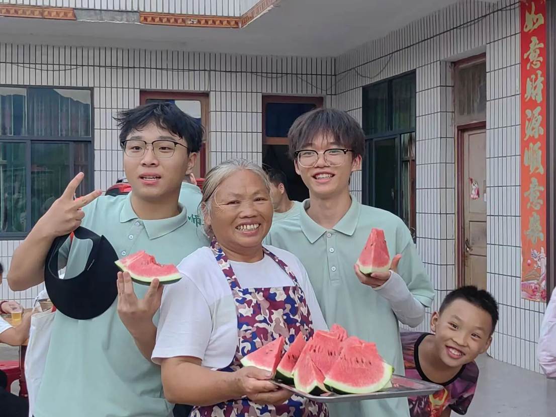 (图为村民为实践团调研成员分享水果)