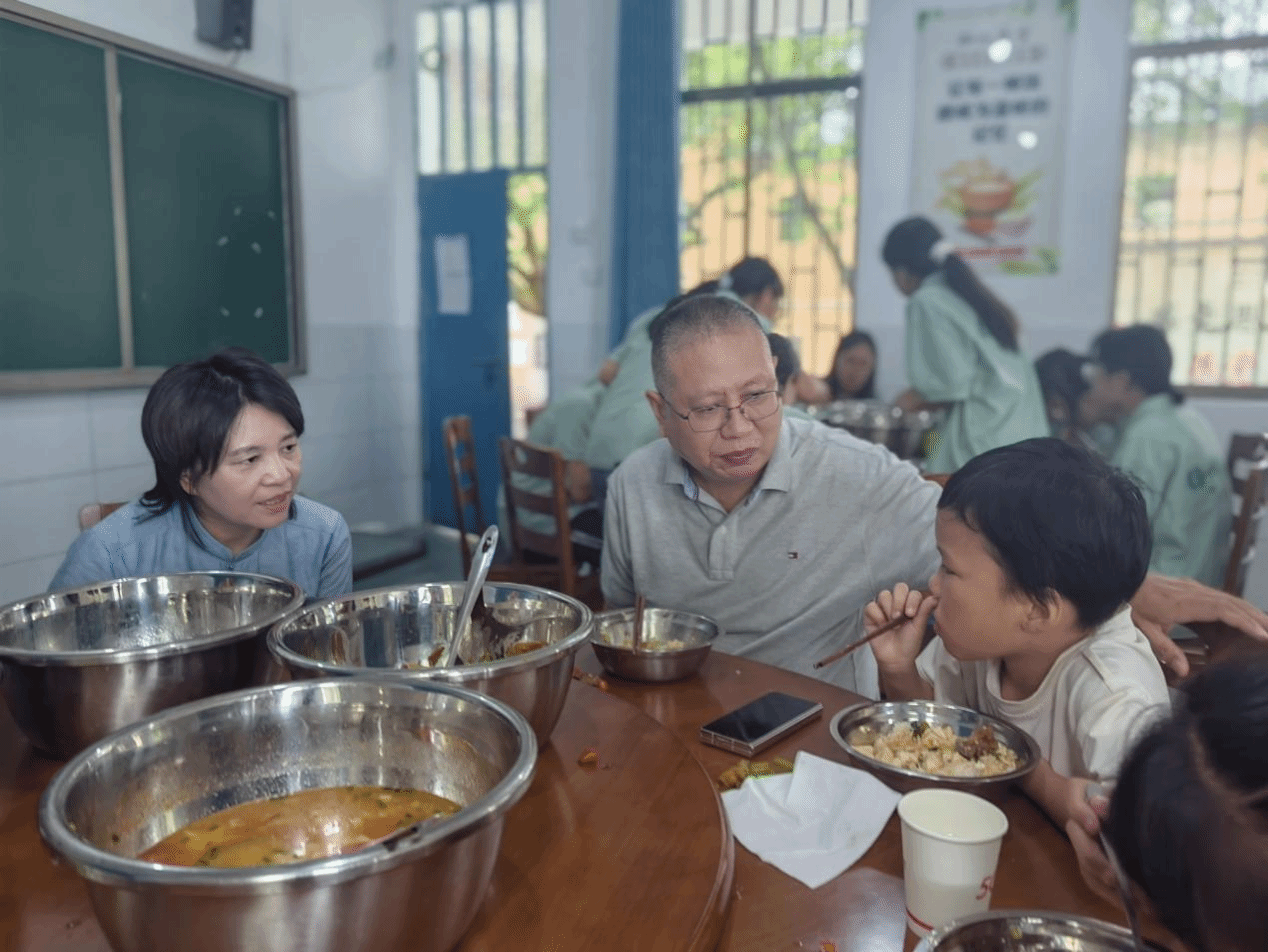 随后,贺桂香一行深入员工寝室与食堂。在寝室,她仔细查看住宿环境,关切询问志愿者与孩子们“住宿习惯吗”“晚上睡觉热不热”;在食堂,她详细了解饮食搭配与卫生状况,强调“孩子们正处于成长关键期,务必保证营养均衡、食品安全”。罗斌结合公司管理实际,为实践团优化食宿安排提供了具体建议,贴心的指导让志愿者们倍感温暖。