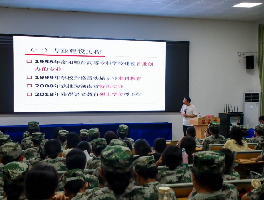 (新生们认真听讲介绍会)