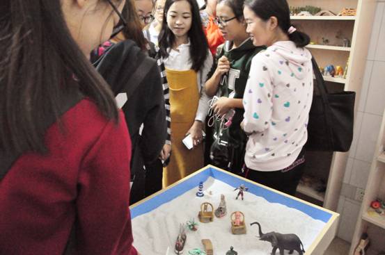 在参观途中,沙盘游戏治疗室引起了大家的关注。“我们的沙盘游戏治疗室主要针对性格孤僻,有交际障碍的同学,让同学在玩游戏的过程中,对他进行一个初步的判断,从而对他进行有针对的辅导,”杨硕学姐向大家解释道。对于大家都比较关心的保密问题,学姐则强调: “只要你踏入了心理咨询室,那么这里的老师,工作人员,就会严格遵守保密原则。”打消了同学们的心里的顾虑。