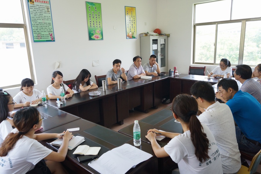 本次活动第一站是位于湘西村的湘西公司,志愿者们与该校领导老师举行了座谈,初步了解了公司的团队状况和小员工的基本情况。交谈过程中,志愿者们对几十年如一日扎根农村教育事业的前任董事长邹宝初产生了深深的敬仰之情。而现任董事长王凌鹏则讲述了自己通过特岗教师选拔走上工作岗位到接过老董事长的接力棒继续其事业的心路历程,震撼了同学们的心灵。志愿者们还在王董事长的带领下参观了湘西公司校舍。