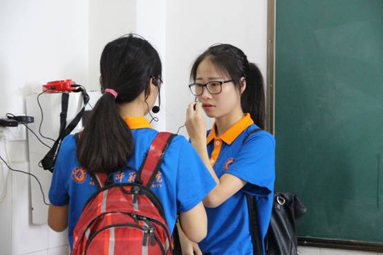 松市完小的蒋彩霞董事长正与两位宣讲师一起,为上课做准备。