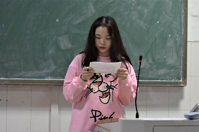 在“为分团委员工会提意见”的环节中,生活部部长孙雯及素拓部部长尹语璇就上次例会所提出的建议做出回应。紧接着,2019级汉语言文学三班班长潘智肯定了各部门的工作的开展并表示对各项通知的理解与支持。随后2019级汉语言四班班长李佳文就各部门工作出现的问题提出建议:希望生活部的规定能够更具人文性关怀以及变通的可能性、素拓部能够减少每日一篇的人数要求。并希望各部门能够尽早下达通知,给予各班充足的准备时间,共同协力将学院建设得更好。