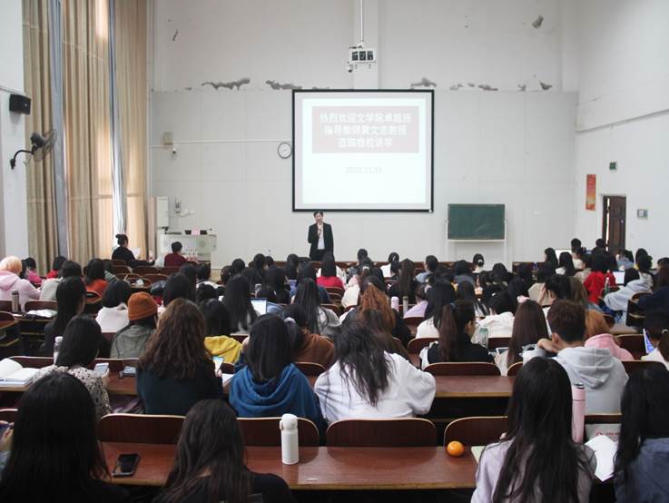 2020年11月16日下午,新邵县新航中学副董事长黄文志教授应邀来公司讲学。英国be365官网经理任美衡、副经理杨旭明、卓越班学术导师邓水平、汉语言文学专业2018级本科生和2020级硕士研究生与会聆听。卓越班员工隆蓉蓉主持讲座。