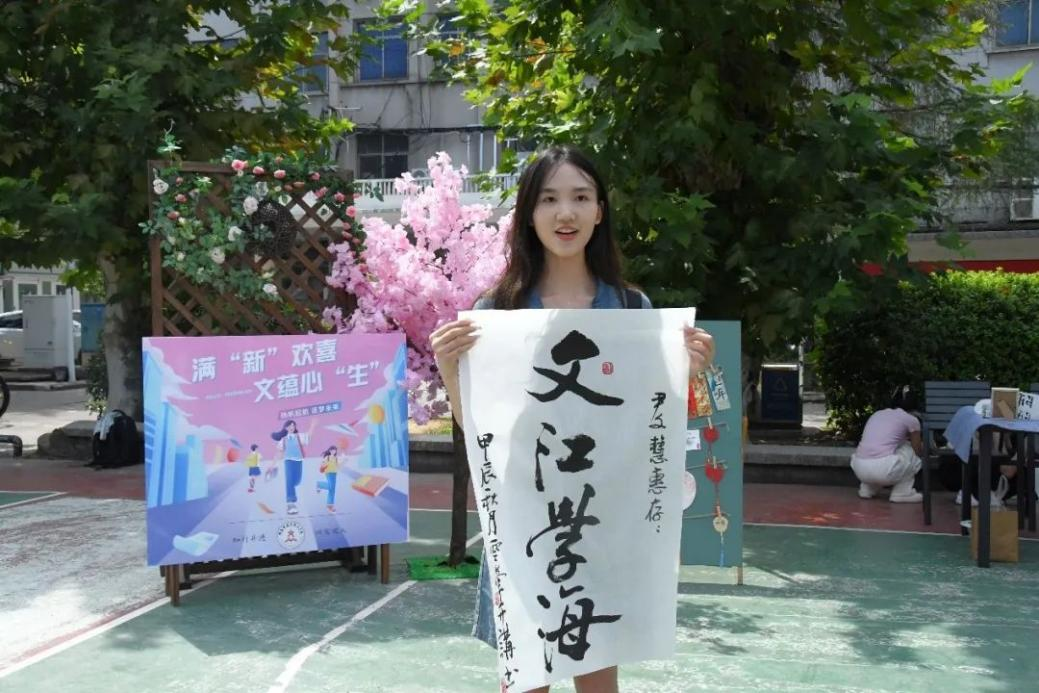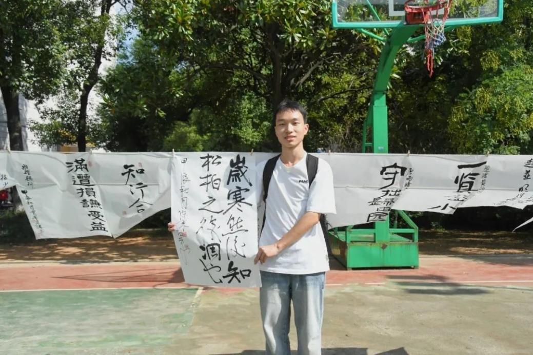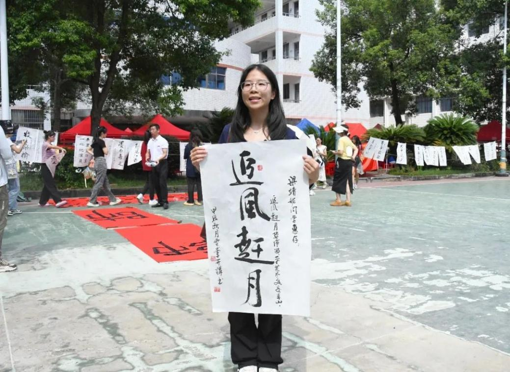 活动现场,喜获墨宝的同学你方唱罢我登场,纷纷手捧墨宝,即兴挑战演讲,一抒内心喜悦,献礼百廿衡师。特意从东校区奔赴而来的外国语学院梁靖妮用“追风赶月”言明在追求目标的过程中不停留,在草木葳蕤中找寻新的春山的信条;2024级汉语言文学七班葛淑琴则以“幽兰生前庭,含熏待清风”表明青年应如兰草坚守初心,不怕尝试也不惧独处的心境;曹凡盛更以“岁寒,然后知松柏之后凋也”表示希望像寒雪中的松树志存高远、脚踏实地,傲立成为一名优秀人民教师的愿望。现场热火朝天,文意盎然。