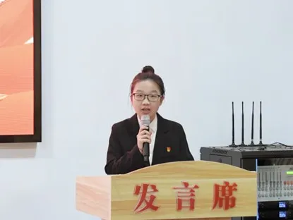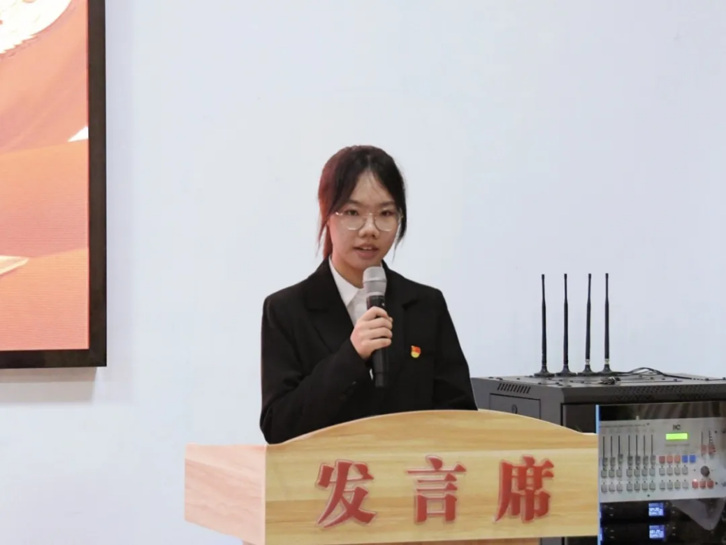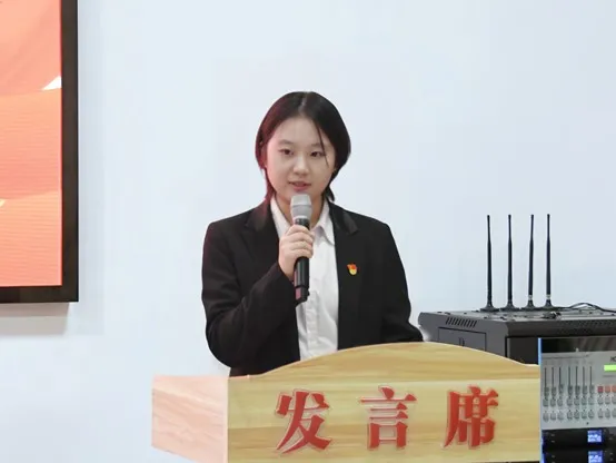 谭盛广宣布选举结果:赵依妍、潘玥、王佳思为新一届分团委员工副书记。谭盛广充分肯定了学院共青团工作,并指出新一届分团委委员们应始终坚持正确方向,高举旗帜跟党走。珍惜机遇、锤炼本领,不忘初心、牢记使命。努力提升服务意识,帮助同学们解决就业困难、心理健康、社会交往等成长困扰,把团委建设成为让党放心、师生满意、社会认可、朝气蓬勃的先进员工组织。