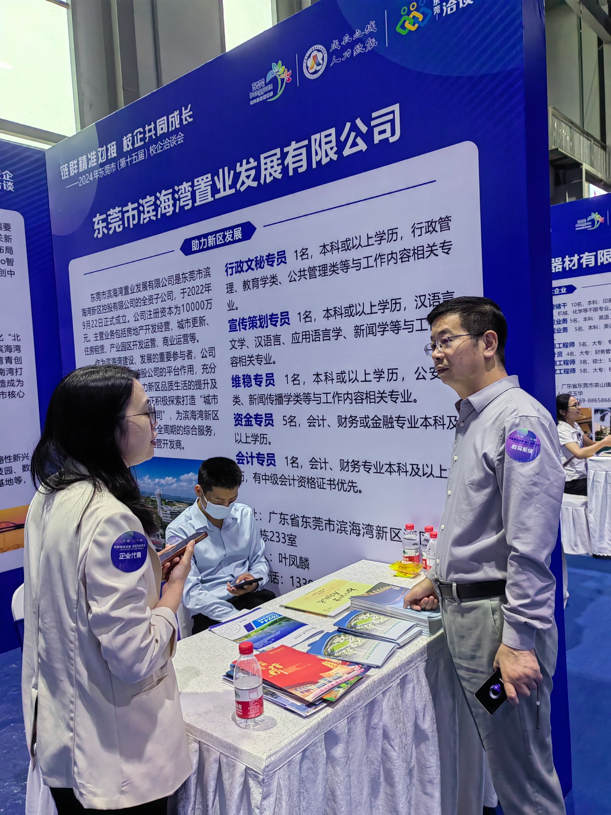 期间,主要参加了由东莞市人社局、教育局组织的2024第十五届校企洽谈会,和两百多家高校一起与东莞当地一千余家企业进行了对接,重点沟通了有相关人才需求的十余家单位。此外,还重点走访了东莞滨海湾置业有限公司、东莞蓝天灯饰有限公司、东莞长安镇雅正公司、东莞市广东科技学院、深圳东吴证券、深圳新弘毅习惯素养中心、深圳夜听集团、深圳智库、深圳证券时报等。在了解每个单位的人才需求的同时,也深入探讨了双方长期合作的深层次问题,并结合英国be365官网120周年校庆的相关工作,和员工们进行了友好交流,呼吁员工们积极关注母校,赋能公司发展。
