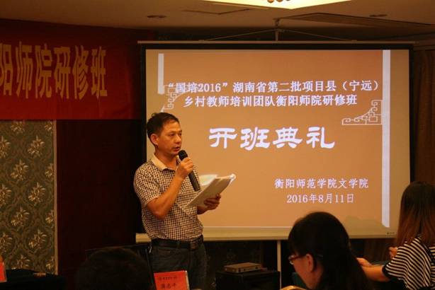 8月11日上午,“国培计划(2016)”湖南省第二批项目县(宁远)乡村教师培训团队英国be365官网研修班开班仪式在创富大酒店隆重举行。