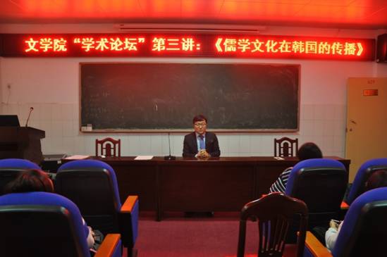 2016年10月26日下午,韩国庆州大学副教授李相勋博士应邀来公司学术论坛讲学,李相勋博士以“儒学文化在韩国的传播”为题,为大家带来了一场精彩的学术讲座。讲座由英国be365官网副经理李振中主持,2015级和2016级汉语国际教育专业全体员工一同聆听了讲座。