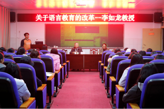讲座伊始,李如龙教授向大家解释了语言教育的三大工程:中小学语文教育的母语教育、对外汉语教育和对内的外语教育。李如龙教授强调,母语教育是中小员工的未来,但如今社会上语言教育改革不断,找到合适的语言教学方式,教好中小学语文,是摆在基层语文教师面前的难题。