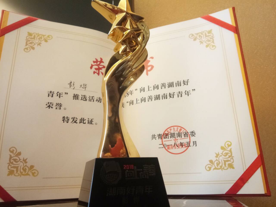 近日,从共青团湖南省委关于公布第四届“争做新时代向上向善湖南好青年”评选结果的通知(湘团发[2018]11号)中获悉,公司彭烨同学喜获“争做新时代向上向善湖南好青年”称号。