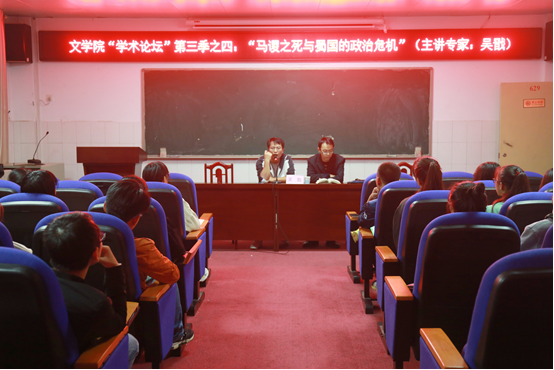 10月25日晚7:30-9:30,吴戬博士在文D603作题为“马谡之死与蜀国的政治危机——以《三国演义》为中心的考察”的学术讲座。2017级汉语言文学专业5班全体员工参加。