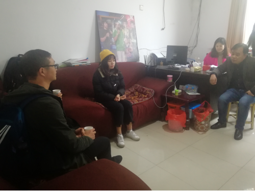 图四:与子扬影视传媒公司董事长曾启军及实习生何紫佳座谈