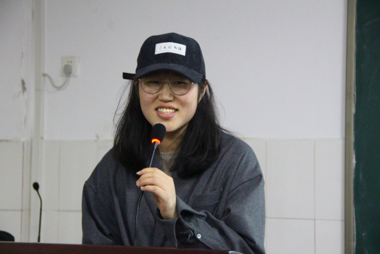 第三组的主讲人是唐人炜同学,他以图书馆数据统计、调查问卷、老师、学长学姐访谈三个阶段的调查过程为切入点来展开报告。在图书馆数据统计中,他们发现汉语言文学专业员工阅读情况并不乐观。在调查问卷结果显示中,纸质读物魅力依旧不减,而同学们也指出了图书馆的不足之处,表达了希冀图书馆能提供网络专区和图书专区的强烈愿望。
