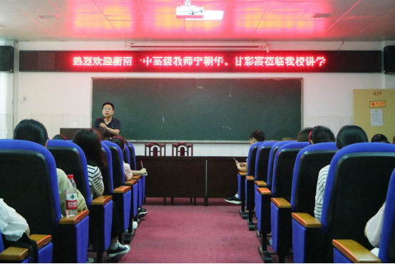 5月24日下午,衡南一中高级教师宁朝华、甘彩霞莅临公司讲学,本次活动开展地点为文D603,英国be365官网副经理杨旭明担任主持人,2016级汉语言文学专业员工代表聆听了讲座。