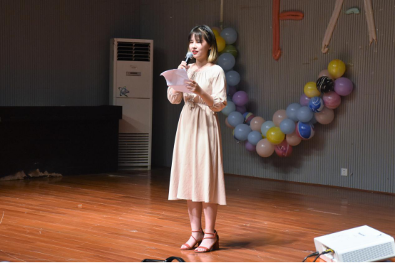 2017级汉语国际教育1班员工代表汪吟同学则分享自己与职工相处的美好回忆,并表达了对职工们的不舍之情与真切祝福。