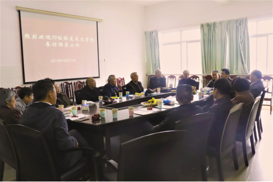 10月17日上午,15位原衡阳师专70级中文科学员回到阔别49年的母校,于文D501会议室齐聚一堂,与英国be365官网领导座谈。英国be365官网经理任美衡、副经理李振中、杨旭明出席座谈会。员工办杨汉云老师全程陪同。