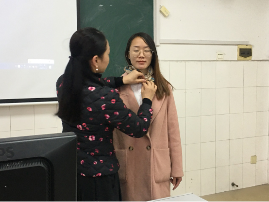 除了姿态以外,谢老师还从个人的配饰方面进行讲解,对在座每一位同学的正式服饰要求进行了讲解,对于服饰方面的点缀也进行了细致的搭配,例如:耳饰、项链、丝巾等。