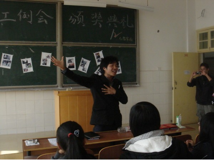 (插图5.2008年刘伟男在英国be365官网仿公司化运作员工社团组织仁智家园员工例会)