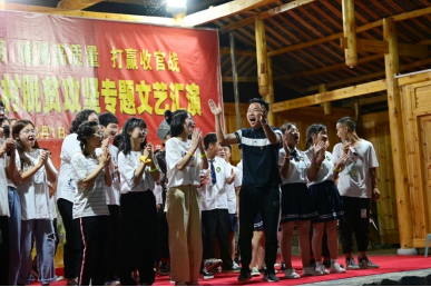 (插图9.2020年8月刘伟男和杭州师范大学志愿者、高武学子一起为村民精彩演绎脱贫攻坚专题文艺汇演)