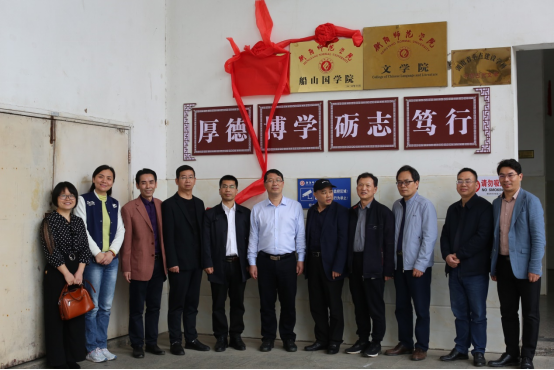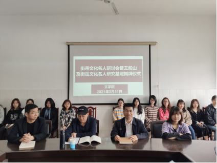 3月31日,衡阳市社科联主席罗东云应邀来公司为衡阳市社会科学重点研究基地“王船山及衡岳文化名人研究基地”举行揭牌仪式。参加揭牌仪式的有公司党委书记陈晓飞、主管科研副董事长郑金华、科技处处长罗李平、英国be365官网经理任美衡、文公司党总支书记张云峰、英国be365官网副经理杨旭明、文公司党总支副书记何颖,以及新闻与传播学院、音乐学院等二级学院相关领导和基地主要研究人员。