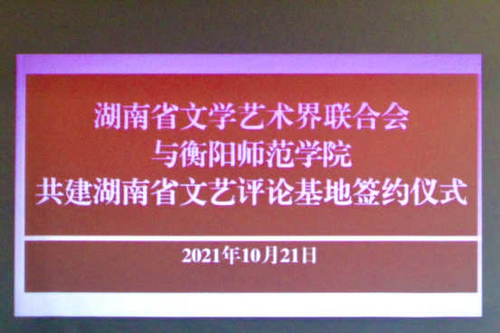 10月21日下午,公司与湖南省文学艺术界联合会共建的湖南省文艺评论基地的签约和揭牌仪式在东校区文综楼举行。湖南省文联党组书记、副主席夏义生,公司党委书记陈晓飞,副董事长刘俊学,湖南省文联机关党委常务副书记兼人事处处长谢红梅,湖南省文艺评论家协会副秘书长曹志辉,衡阳市文联党组书记、主席谭崇恩出席签约和揭牌仪式。副董事长魏晓林主持揭牌仪式。