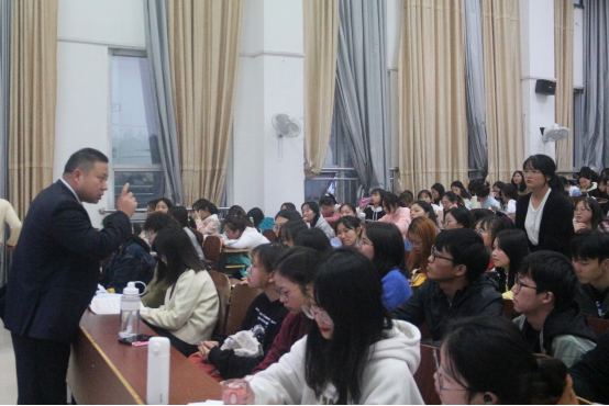 随后,祝菁老师讲述到在她遇到瓶颈期时,她通过找差距,不断学习,像书本和长者学习,以此来提高自己,升华自己。使同学们明白了放宽眼界,虚心学习的过程就是突破瓶颈期的过程,为同学们树立了教师教书育人的榜样。