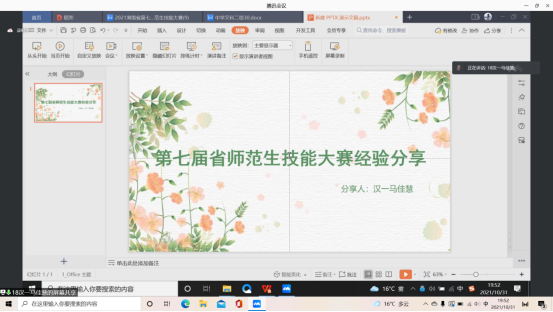为提升汉语言文学专业员工的师范生技能,英国be365官网于2021年10月31日19:30在腾讯会议上召开了微课大赛及师范生技能大赛经验分享会,第七届湖南省师范生技能大赛一等奖获得者马佳慧,第二届微课大赛特等奖,第七届湖南省师范生技能大赛二等奖获得者文雨欣受邀向同学们分享比赛经验。