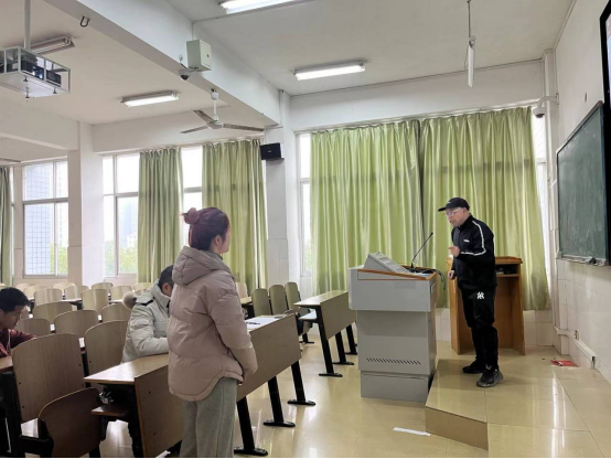 本次比赛主要从教学中的多媒体制作、板书设计、教学方法三方面考察参赛者的师范素质和教学水平,并要求参赛者以选取的知识点为授课重点,进行限时15分钟的片段教学。比赛分小组依次进行,各小组参赛者在候赛室接受工作人员检查证件后,有序进入竞赛室文D303、文D307进行片段教学。
