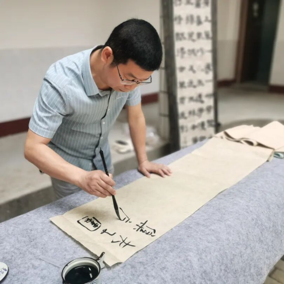 员工代表廖理邦发言:希望通过衡阳市公众书法美术平台,为同学们学习书法提供帮助。他认为书法不单单只是一种书写技巧,也是一种人生观、价值观的体现,练习书法也是对生命的修炼,希望大家能以书法为载体感悟人生的道理,以技入道。