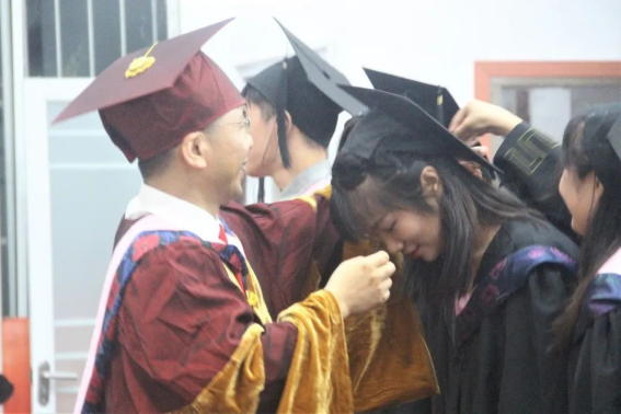 本次典礼最庄严的时刻——拨穗,70名毕业生代表头戴学士帽,满怀感激与对未来的憧憬上台,接受拨穗礼。任美衡经理怀着美好的祝愿将学子们的帽穗一个个由右边拨到左边,象征着麦穗已经成熟,学子们学有所成,就要展翅高飞了。