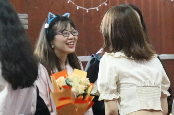 随着晚会环节开始,主持人18汉五胡倩、隆蓉蓉一亮相,整个会场就沸腾起来,一首首歌曲、一支支劲舞,把晚会气氛渲染地热烈而煽情,台上台下已经融汇成一片,每个人都随着音乐吟唱、舞动,从她们的歌声里,舞蹈中,我们看到了眷念,听出了不舍。而低年级同学代表纷纷为毕业生们送上鲜花和礼物,表达他们心里最美好的祝福。